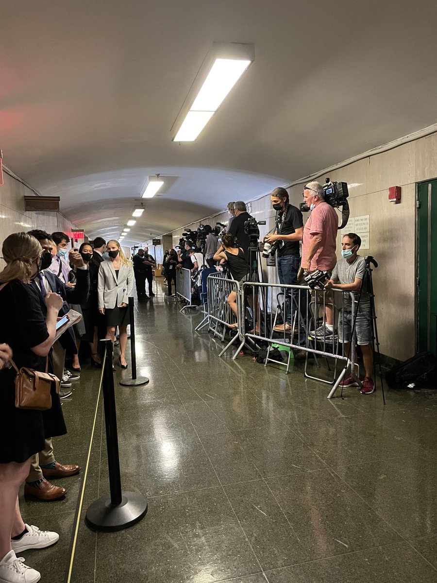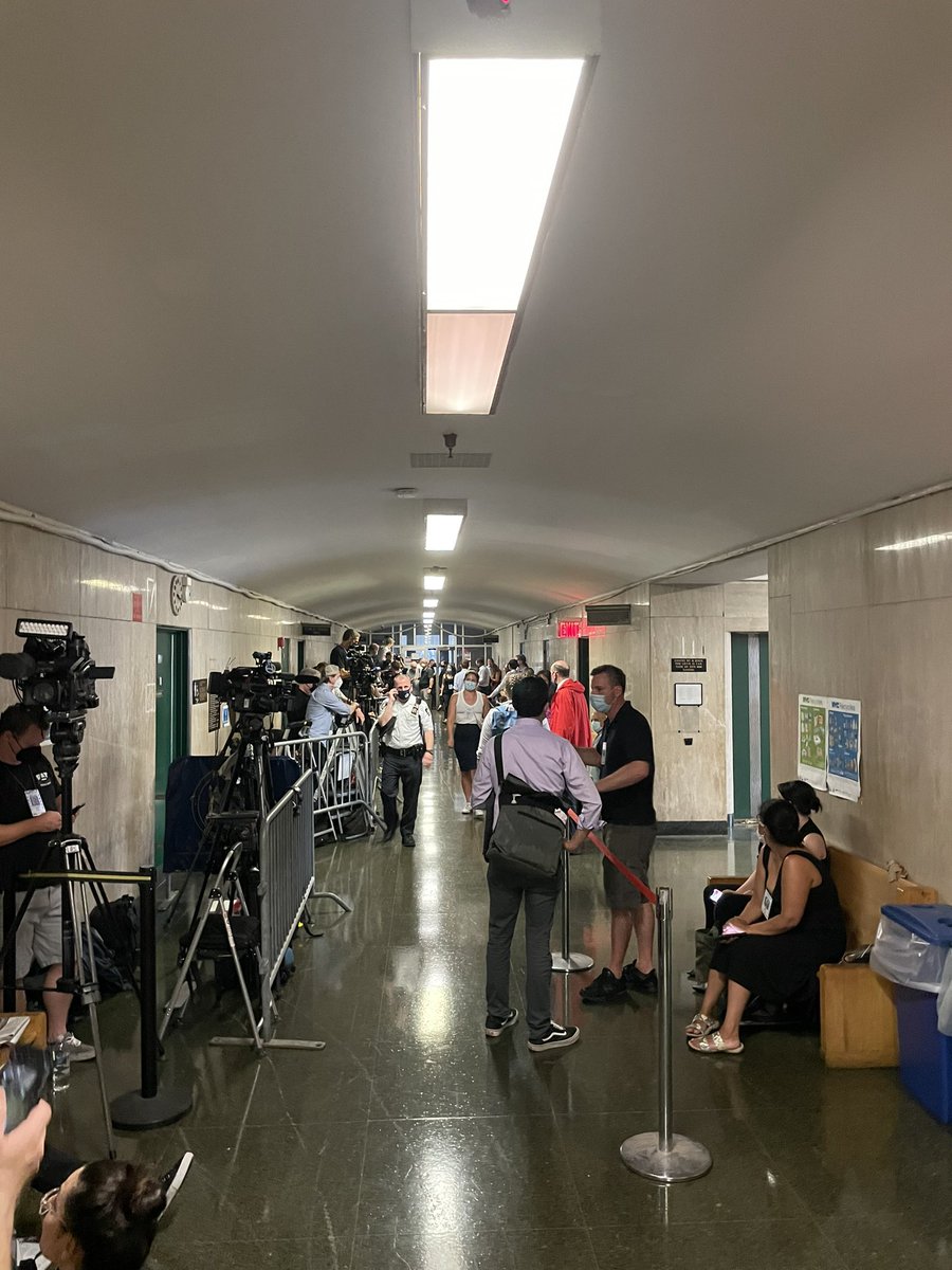 Here is the scene outside of the NY Supreme Court arraignment room. It is filled w sweat and journalists.