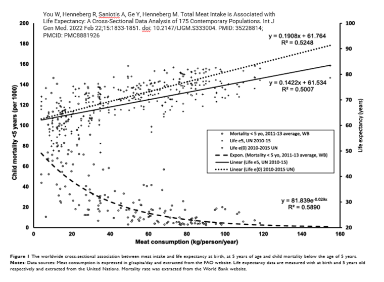 3/ A algunos, por ignorancia o ideología, esto les horroriza, pero estudios rigurosos han demostrado que hay una clara correlación entre consumo de carne y esperanza de vida. En los países más consumidores, se vive más