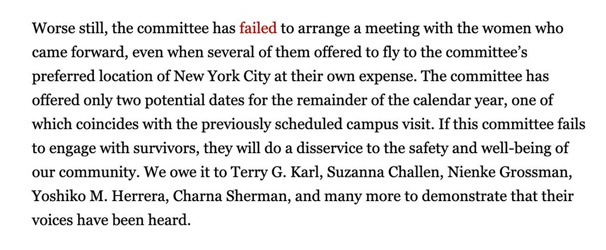 So, #poliscitwitter, please read our op-ed not just to understand this case, but to understand the massive institutional inertia that survivors of sexual harassment and assault face, even with the help of overwhelming evidence and national media scrutiny.