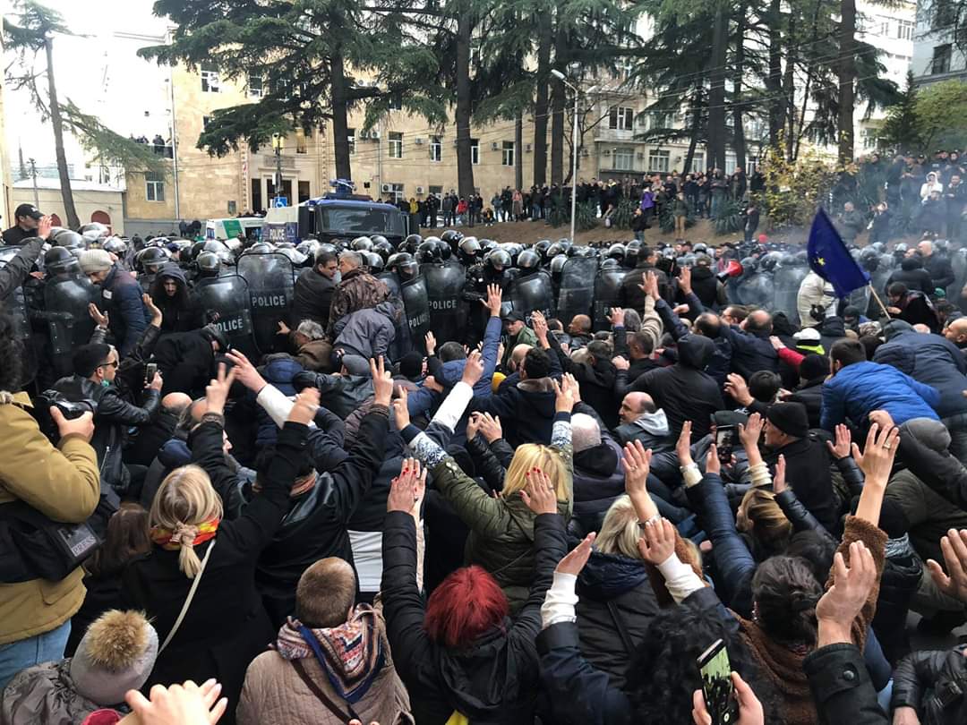 #Georgia π¬πͺ: riot police are surrounding protesters at Parliament this afternoon.