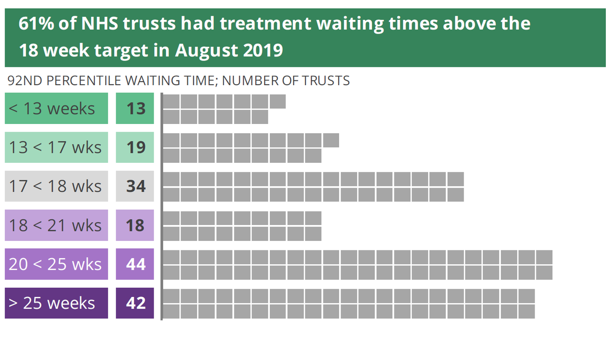 @FDRLST @NHSuk Fourth, @NHSuk has a waiting list target of "only" 18 weeks (4 1/2 months) to wait for specialized treatments. But most NHS trusts are breaking that target... 5/ Image