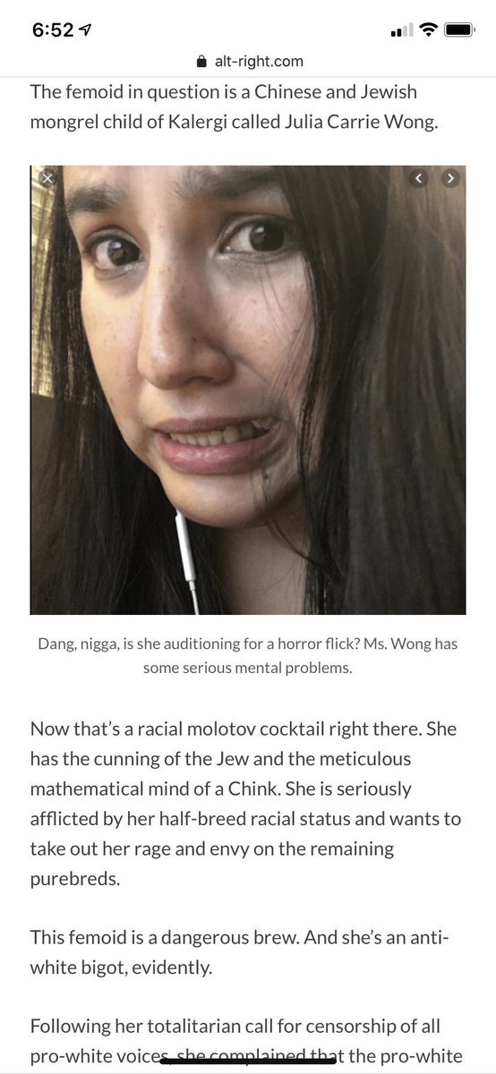 Uno per tutti: “Julia Wong has a history of using her Twitter account to malign her ideological foes as “racist” and has wielded the term “white people” in pejorative ways”