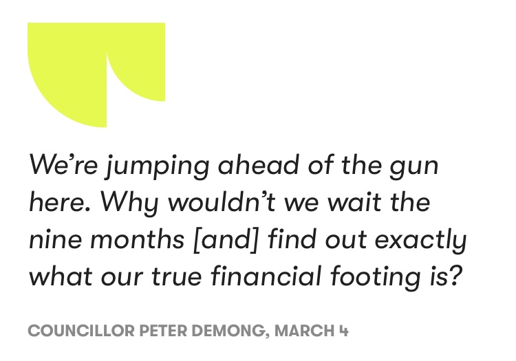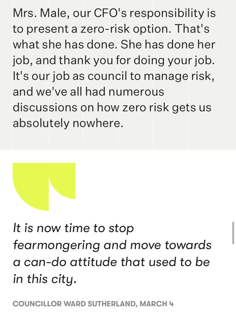"It is now time to stop fearmongering and move towards a can-do attitude that used to be in this city." (March 4)