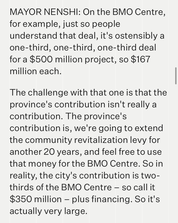 The city made a loan to cover the provincial portion, and that $ is eventually supposed to come back in the form of a CRL—but not until 2028 and beyond.