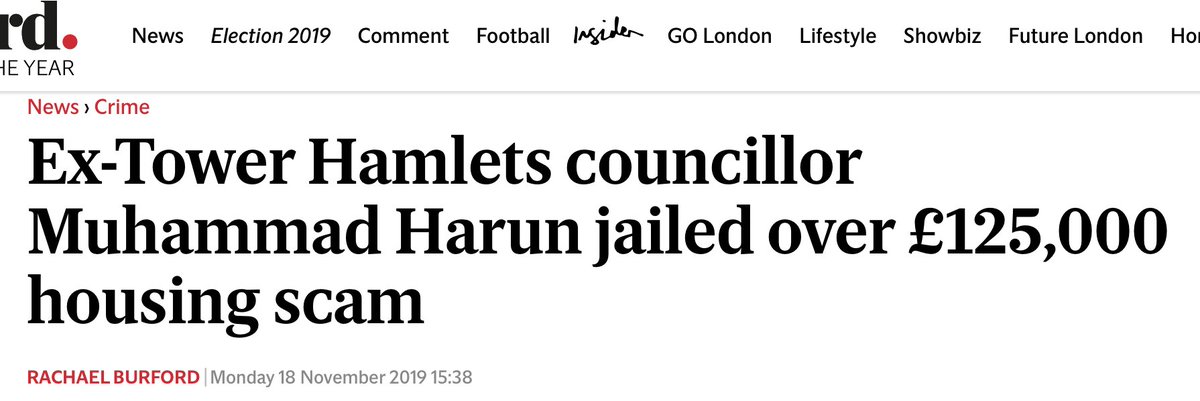 But look at headlines & compare them to Evening Standard, it is quite hard to see that he was even a TH Councillor, you only see that confirmed at the very bottom of the article