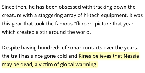 (My favorite is still the guy who thought climate change killed off the Loch Ness monster)