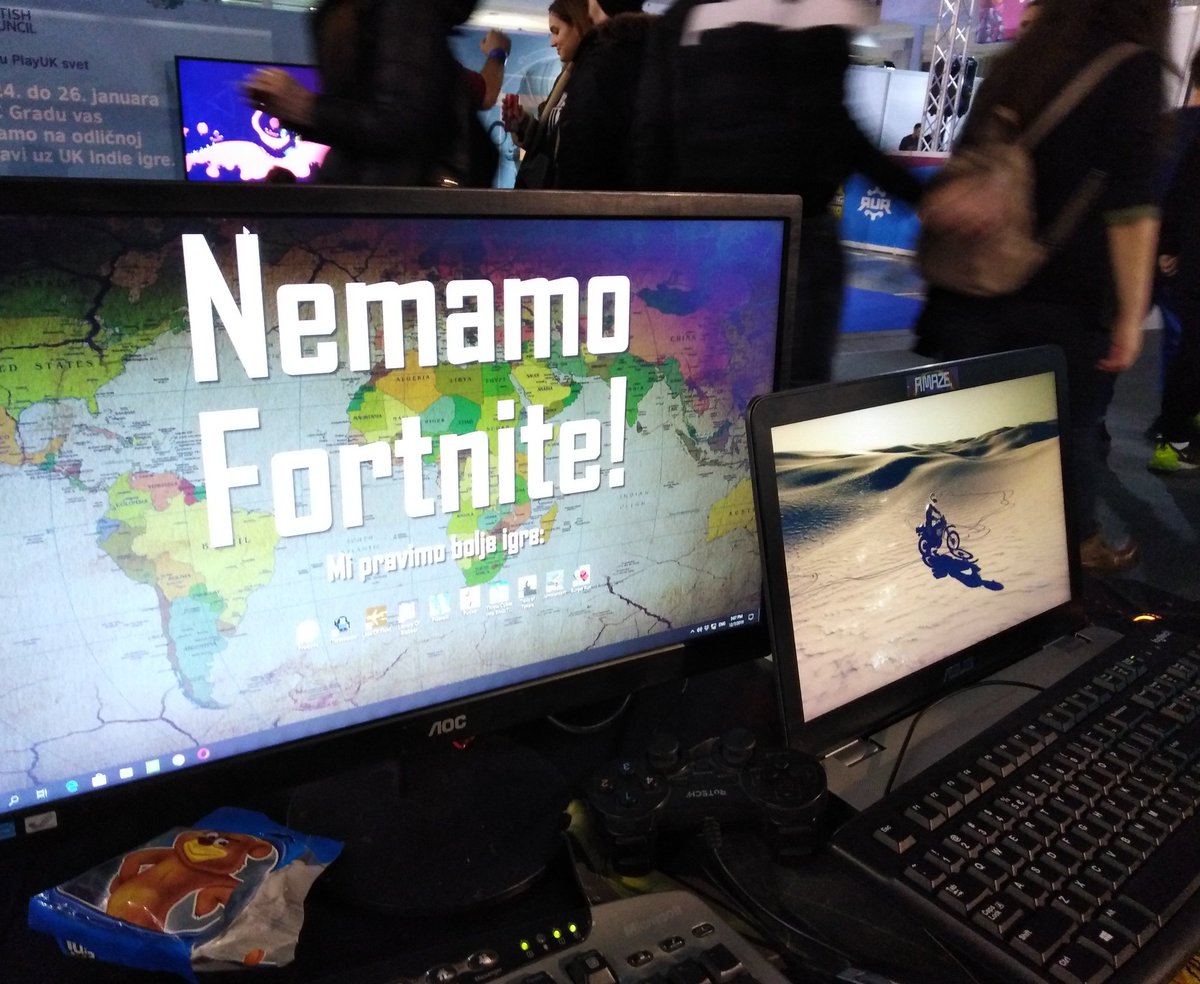 Just showing my games on the fair with a polite message "THERE'S NO FORTNITE HERE, we're making better games:"