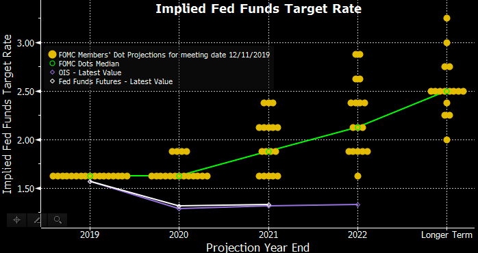 ✅ Left target range for the federal funds rate at 1.5% to 1.75% after three straight cuts