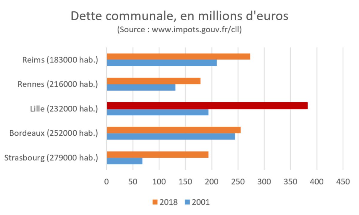 Je compare Lille avec les 4 villes les plus proches en nombre d’habitants.
