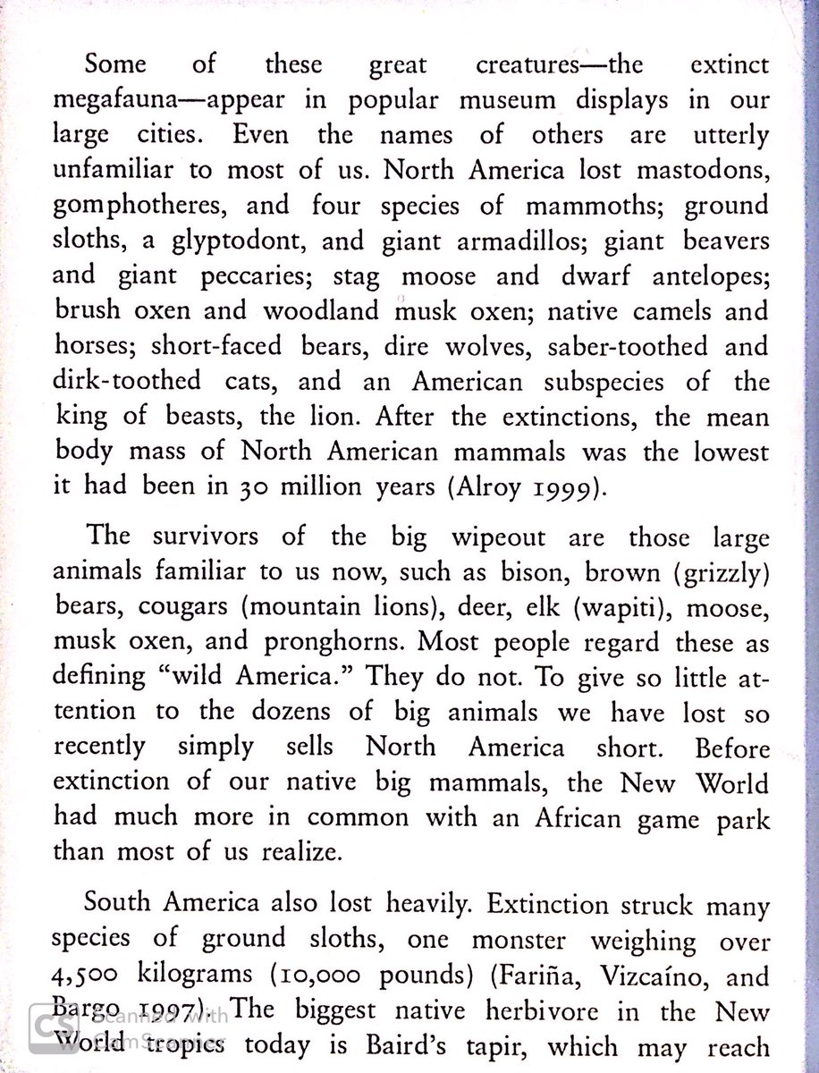 Thread with excerpts from “Twilight of the Mammoths: Ice Age Extinctions and the Rewilding of America” by Paul Martin