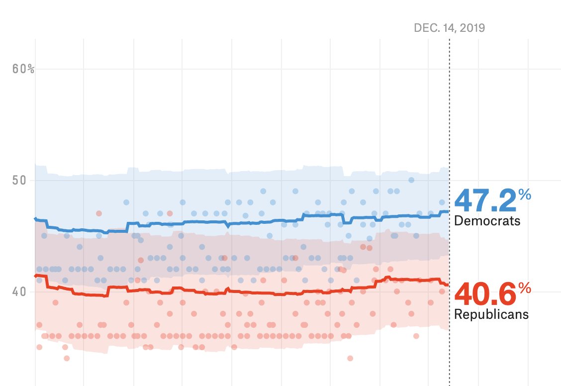 5/ Another interesting data point is the congressional generic ballot, who people plan to vote for for Congress. Basically stable but a slight move in the direction of Democrats. Don't think that means much but certainly doesn't support any idea of an impeachment backlash.