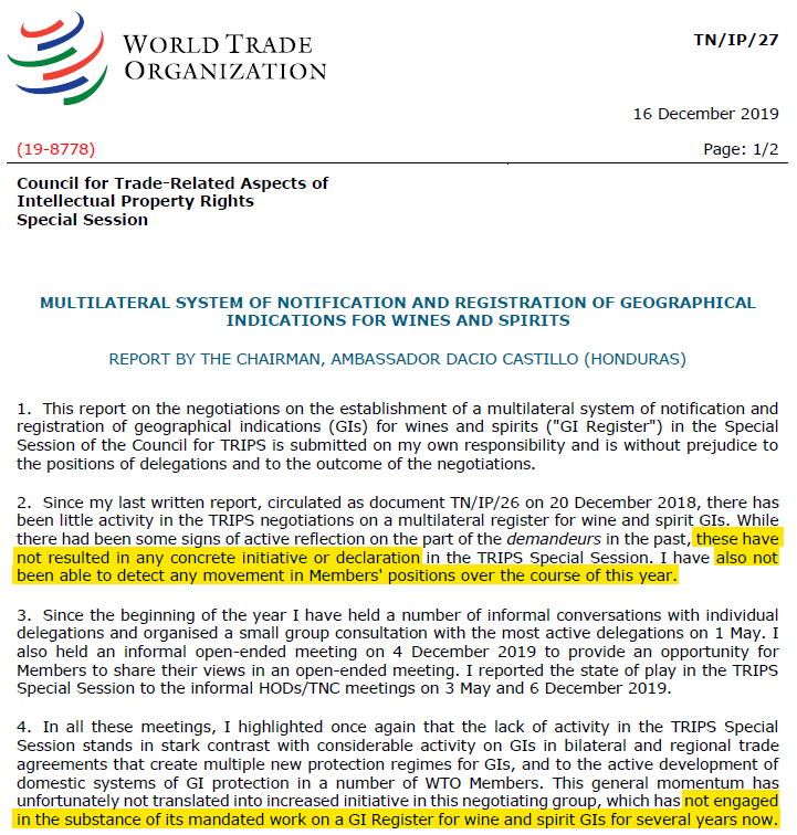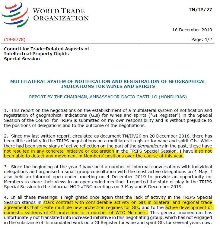 Underlying this: the WTO’s intellectual property agreement (“TRIPS”) says the countries themselves can decide how IP is protected under their own laws