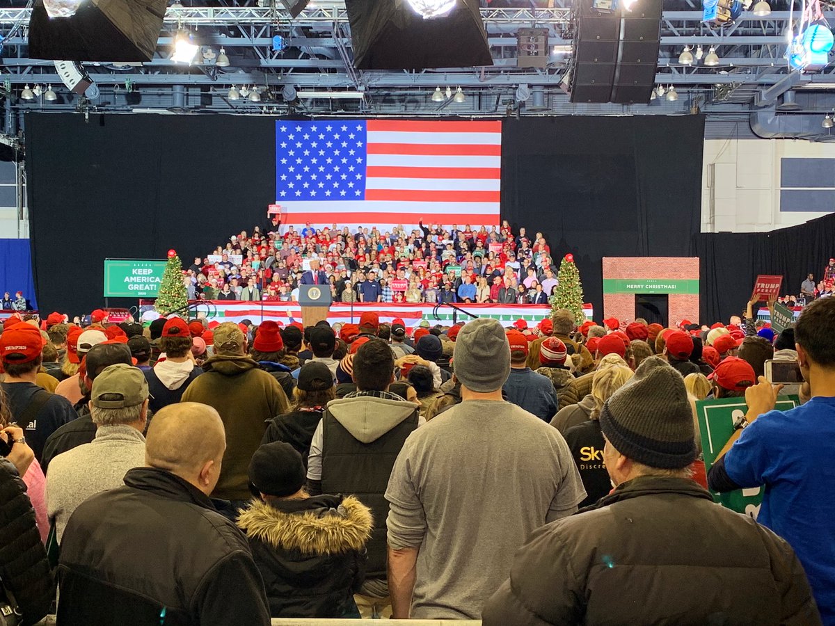 @parscale Vice President Pence up next. Currently playing: "My Way." Program starting 40 mins behind schedule, which will still make for remarkable split screen with DC votes. The president is expected to focus at least one third of his remarks tonight on impeachment, per WH spokesman.
