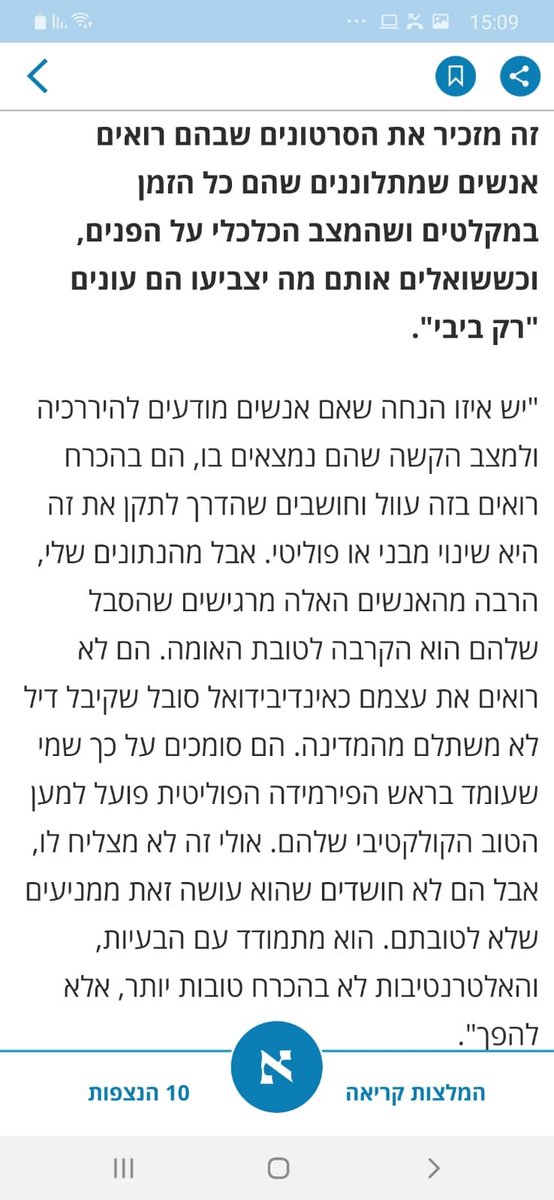ואבחנה כה נכונה ומכאיבה שלו על התנשאות הציונות הדתית על הביביסטים והלהיטות הפתטית שלה לראות עצמה חלק מאליטת השמאל:
