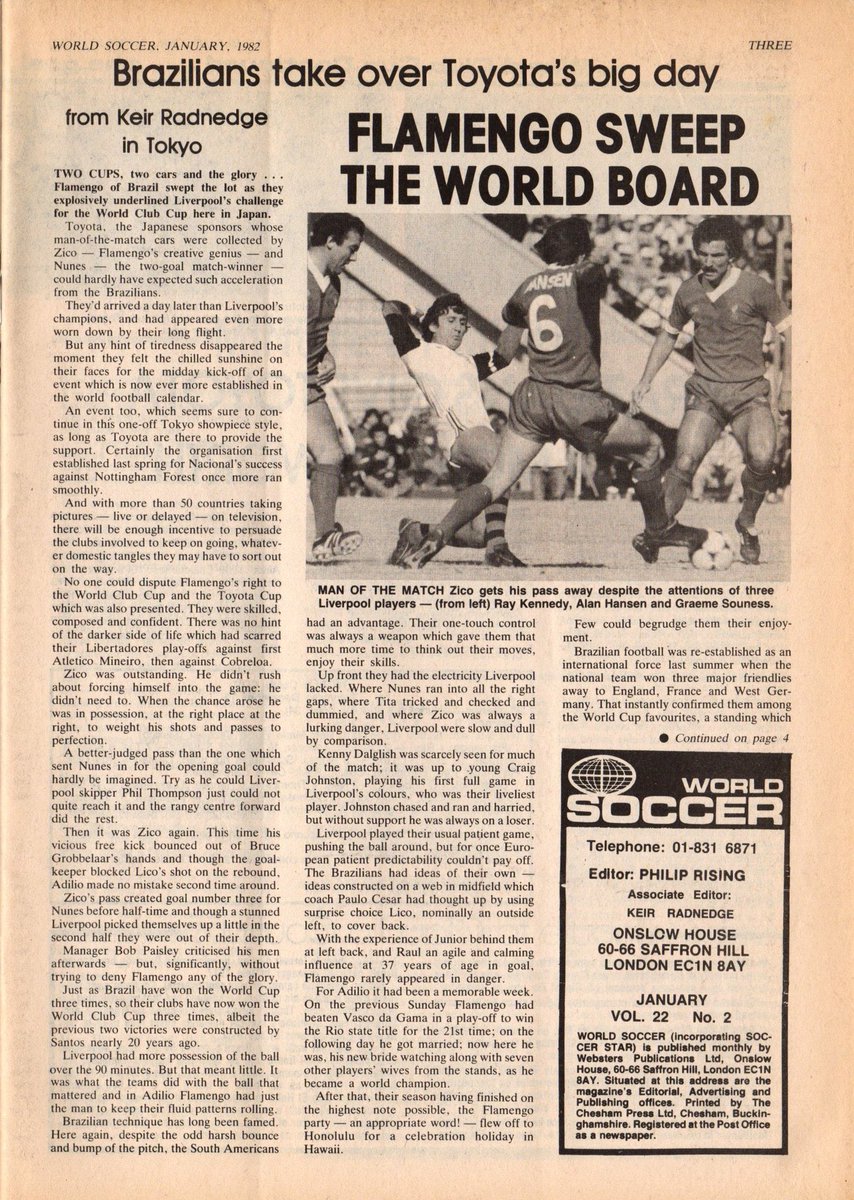 A revista inglesa World Soccer parecia ter bastante interesse nos campeões mundiais da década de 80, ilustrando em suas capas o Peñarol de 82, campeão sobre o Aston Villa, e o Independiente de 84, que bateu o Liverpool. 🏴