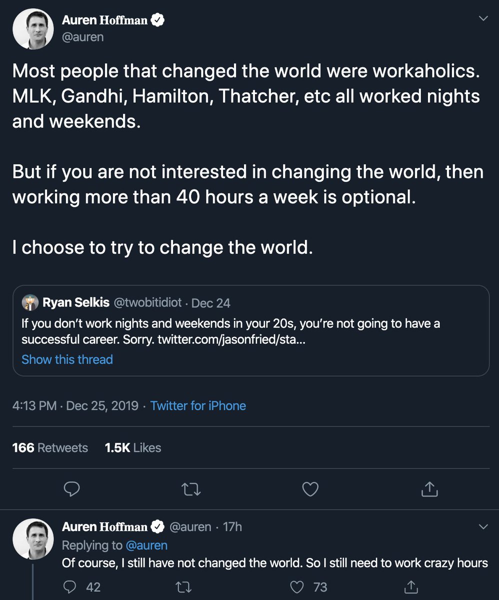 The whole point of having a "developed" economy is that we get to work less while still getting our basic needs met. The goal is to spend as little time as possible at work so we actually get to enjoy being alive on the planet together.