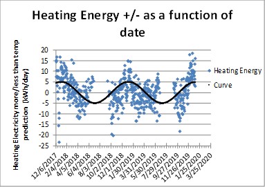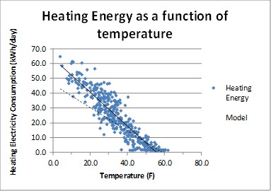Heating energy is largely predicted by temperature and date. The date affects how much solar gain we get through the windows.