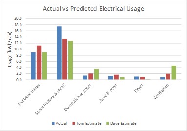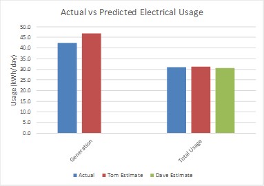 Overall – we underestimated the space heating energy, but overestimated just about everything else. So the total usage is almost exactly as predicted. The generation was overestimated a bit. We had no way to forecast snow cover on the panels, so there was some guesswork.