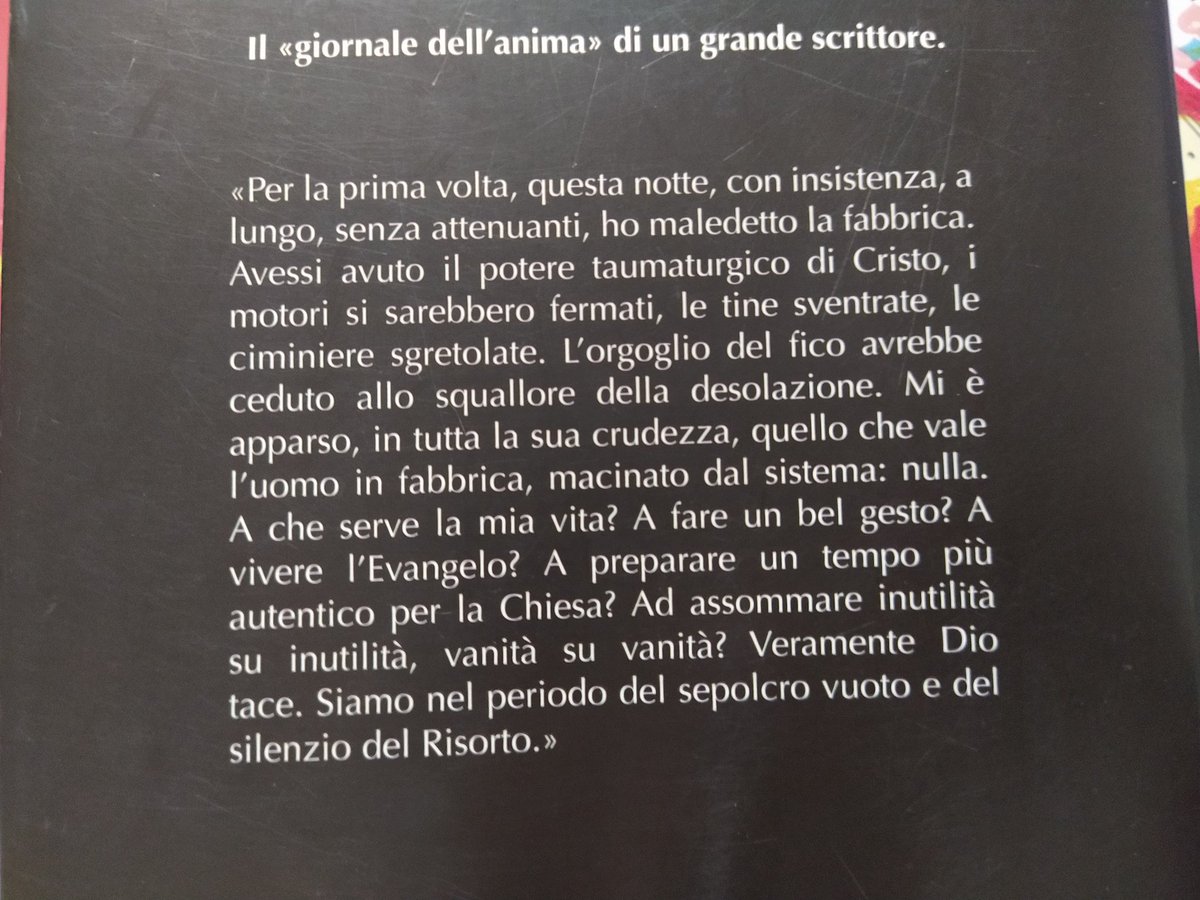 Su quegli anni ha scritto molto, durante e dopo. Tra cui un diario, pubblicato sempre da Sironi dopo la Messa. Sul retro di copertina c'è questa frase che resta di una forza devastante 8/n