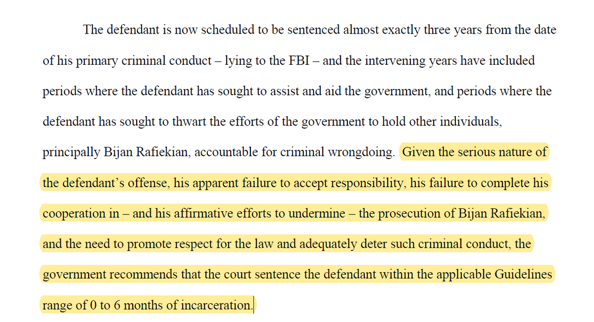 DOJ reverses prior recommendation and asks that Flynn be incarcerated for 0-6 months.