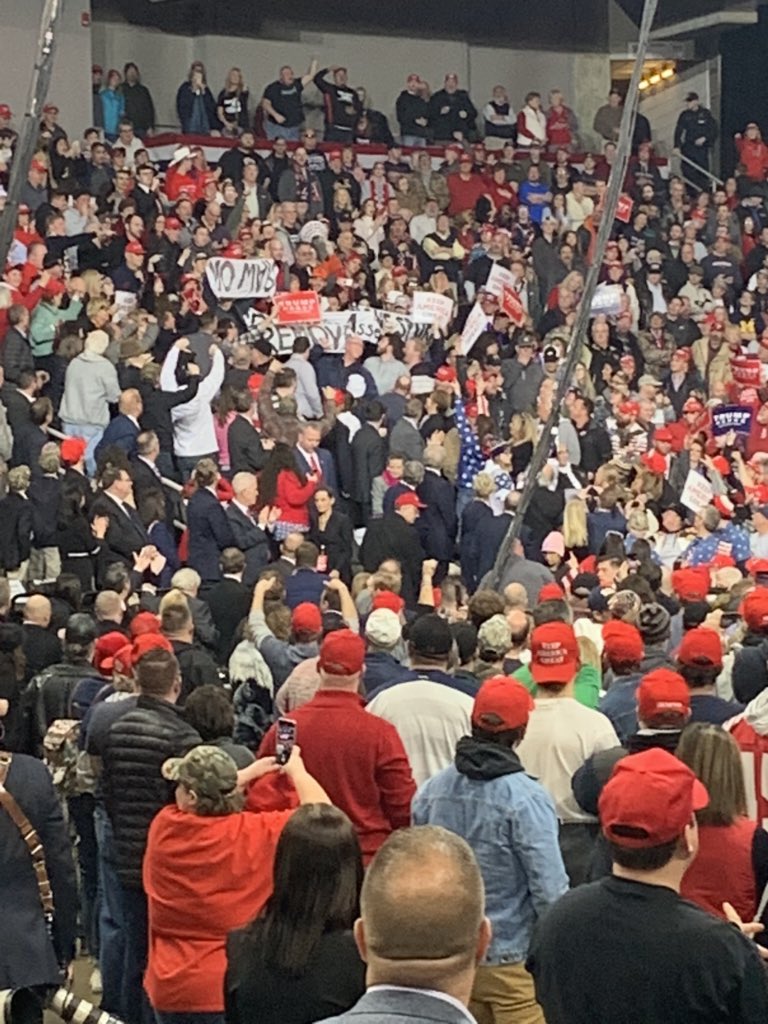 Trump in Toledo. Arena is at capacity, per local officials, with 8000+ but there’s a bit more standing room than usual in the front area