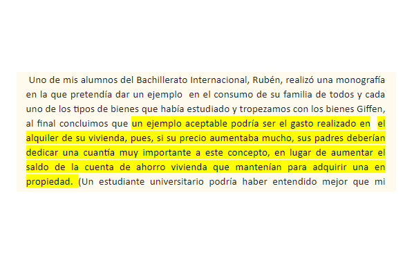 7/? Tenemos pues dos bienes Giffen en acción, dos bienes de primera necesidad como son un espacio donde alojarse y un empleo. Es inevitable que las clases medias y bajas reduzcan en consecuencia su gasto en otros bienes, lo que conduciría a una disminución de la demanda interna: