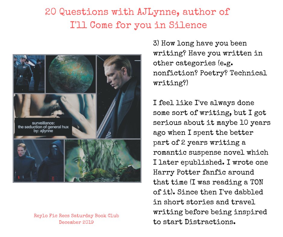 Last month, had the pleasure of playing 20 questions with brilliant #Reylo writer @umswfan as part of Reylo Fic Recs. Here are her responses. Thank you again AJLynne! 😍 #StarWars #fanfiction #reylofanficrec #reylofanfic (A Thread)