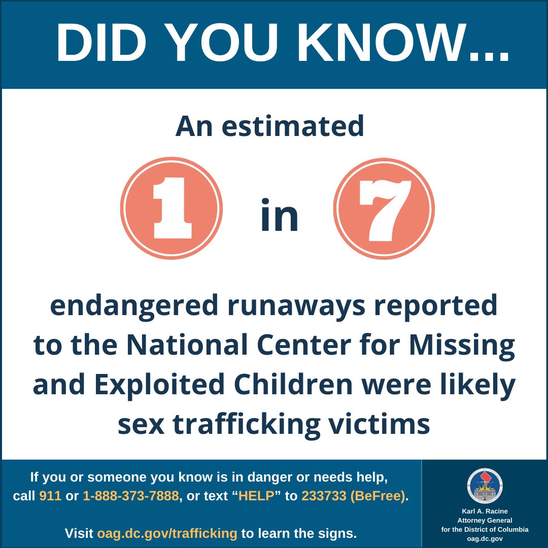 Child #SexTrafficking—a terrible crime in which victims are forced to exchange sexual acts for anything of value—has been reported in all 50 U.S. states and DC.