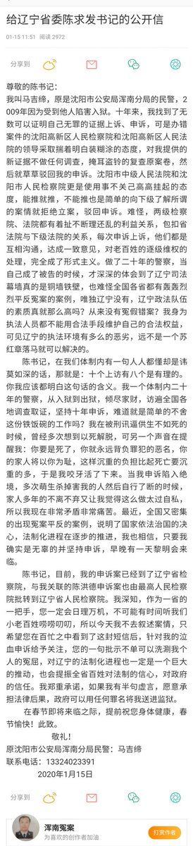 小编找到了其本人在15年在狱中的控诉信,其中他本人对这一事件进行了详细的描述。card.weibo.com/article/h5/s#c…
