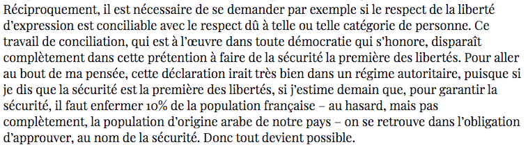 "La première sécurité, c'est la liberté" (mais ça ne va pas durer)
