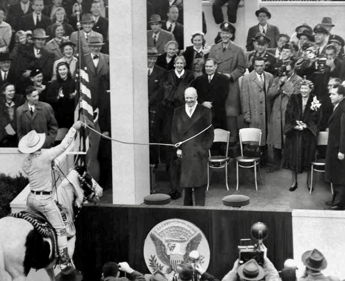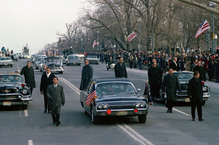 The '61 Lincoln Continental that President Kennedy was murdered in? You may not know that it was refurbished and used by LBJ, Nixon, Ford & Carter. Here: LBJ rides down Pennsylvania Ave. in it. Also seen: @ClintHill_SS - who leaped into the car moments after JFK was shot
