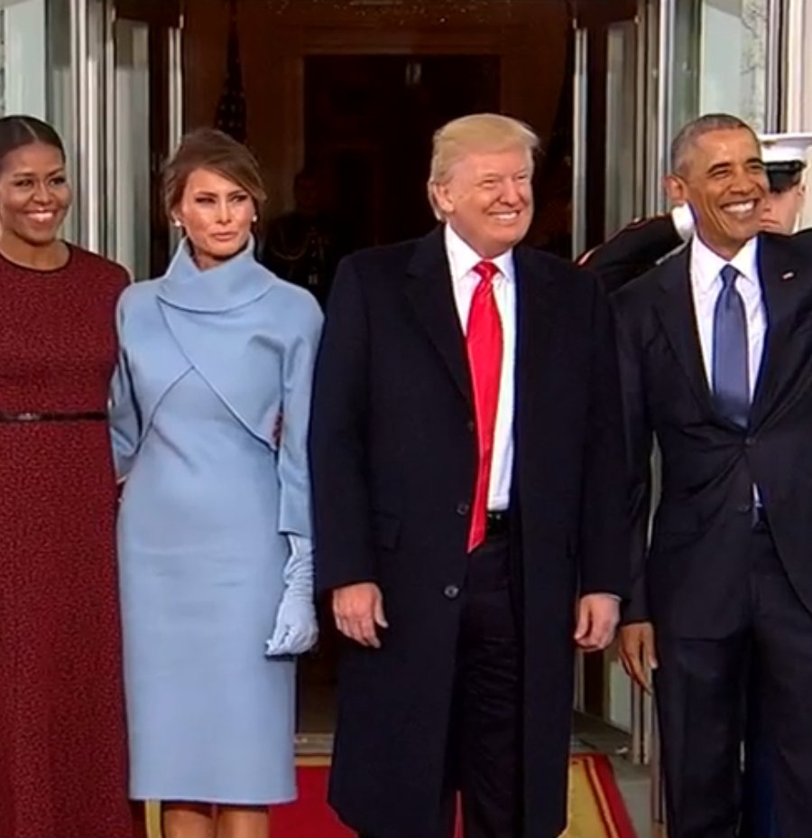 This Day, 2017: Donald Trump, the oldest person ever elected to a first term - and the fifth POTUS to lose the popular vote - with his predecessor, President Obama. Michelle/Melania on left. Inauguration Day 2021 is exactly one year away