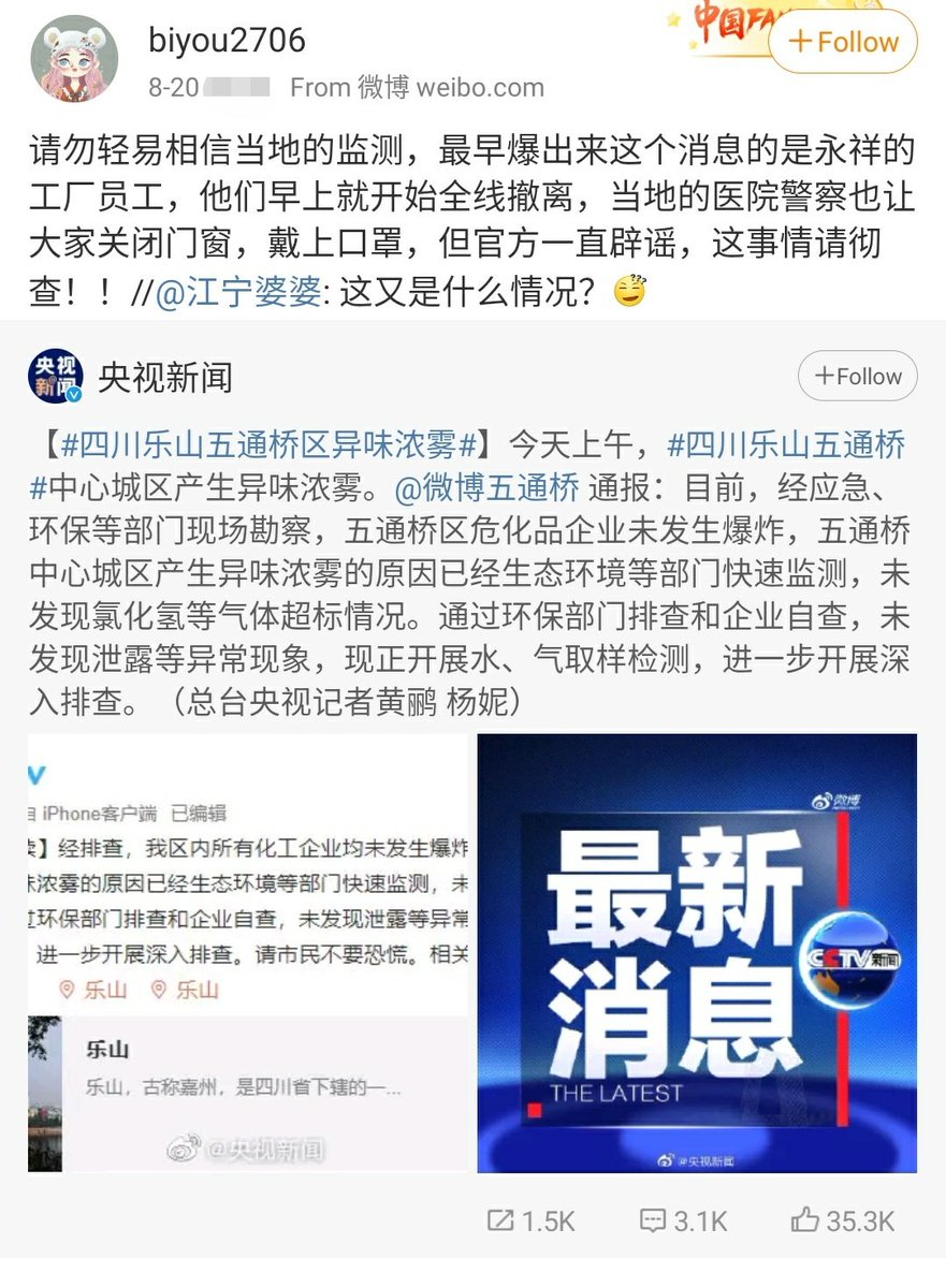 由该微博用户发布的当地“毒气” 情况