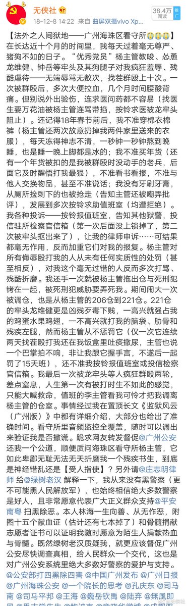 林叔是一个忠诚的共产主义信奉者和毛主席的好学生。几年前发现广州某地经营的赌场后向警方实名举报。反而被当地警察拘留十个月并声称在看守所遭到牢头和监狱的围殴和虐待。