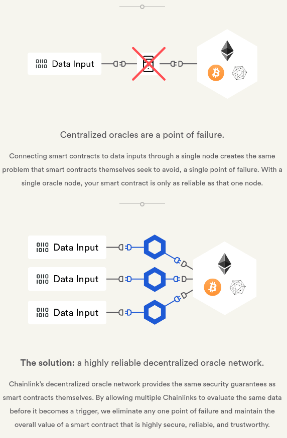 Centralized Oracle: I can't trust this piece of data because it's now a single point of failure to alter my automation's end result.