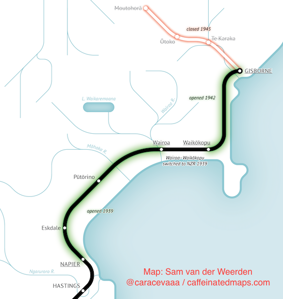 Plans for a railway along the rugged coast north of Napier really got going about 120 years ago. 2/