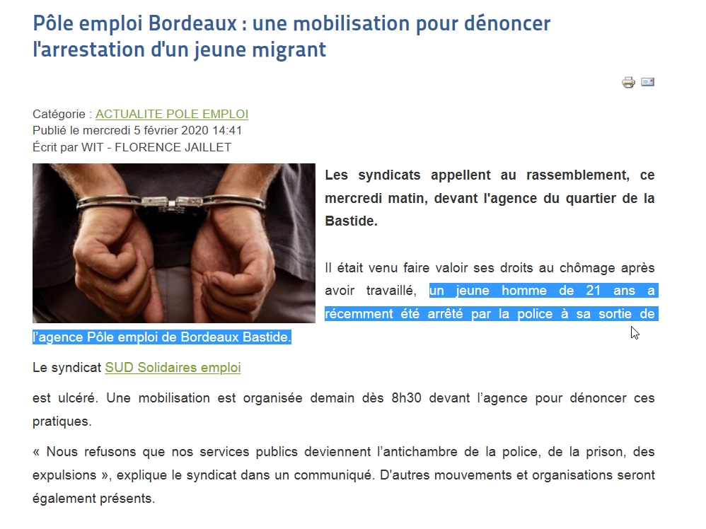Ça va jusqu'à faire de la délation de migrants aux flics votre tendance contrôles, @pole_emploi?