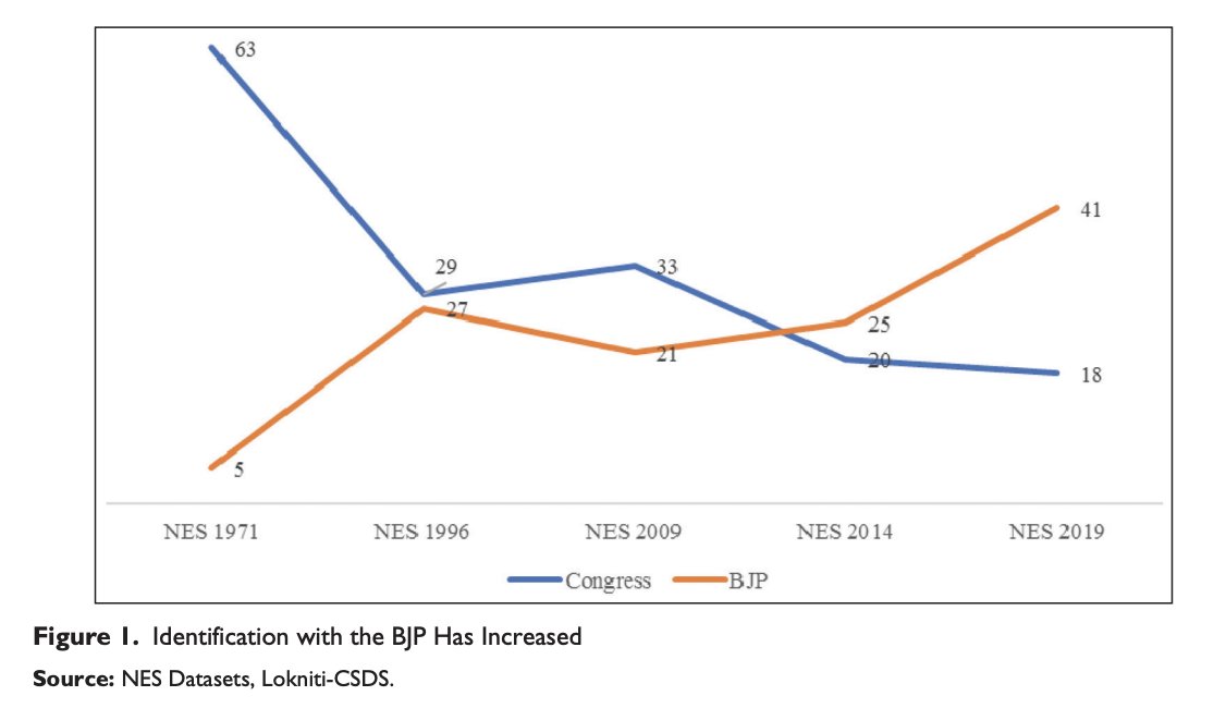 Pradeep Chhibber & I in our @StudiesIndian paper use @LoknitiCSDS survey and find that a new kind of ethnopolitical majoritarianism now binds BJP. This is distinct from the old Hindu Nationalist plank.