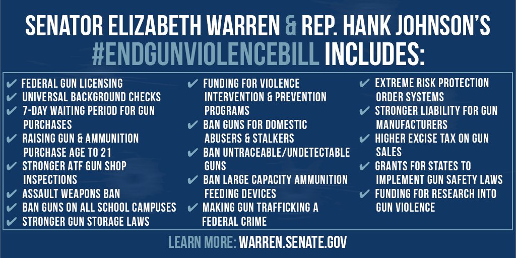 Approximately 3000 Americans died of gun violence this month. 100 people a day, every day. It’s long past time for Congress to stand up to the gun lobby & confront this crisis head-on. @RepHankJohnson & I have a new bill for that. #EndGunViolenceBill warren.senate.gov/newsroom/press…