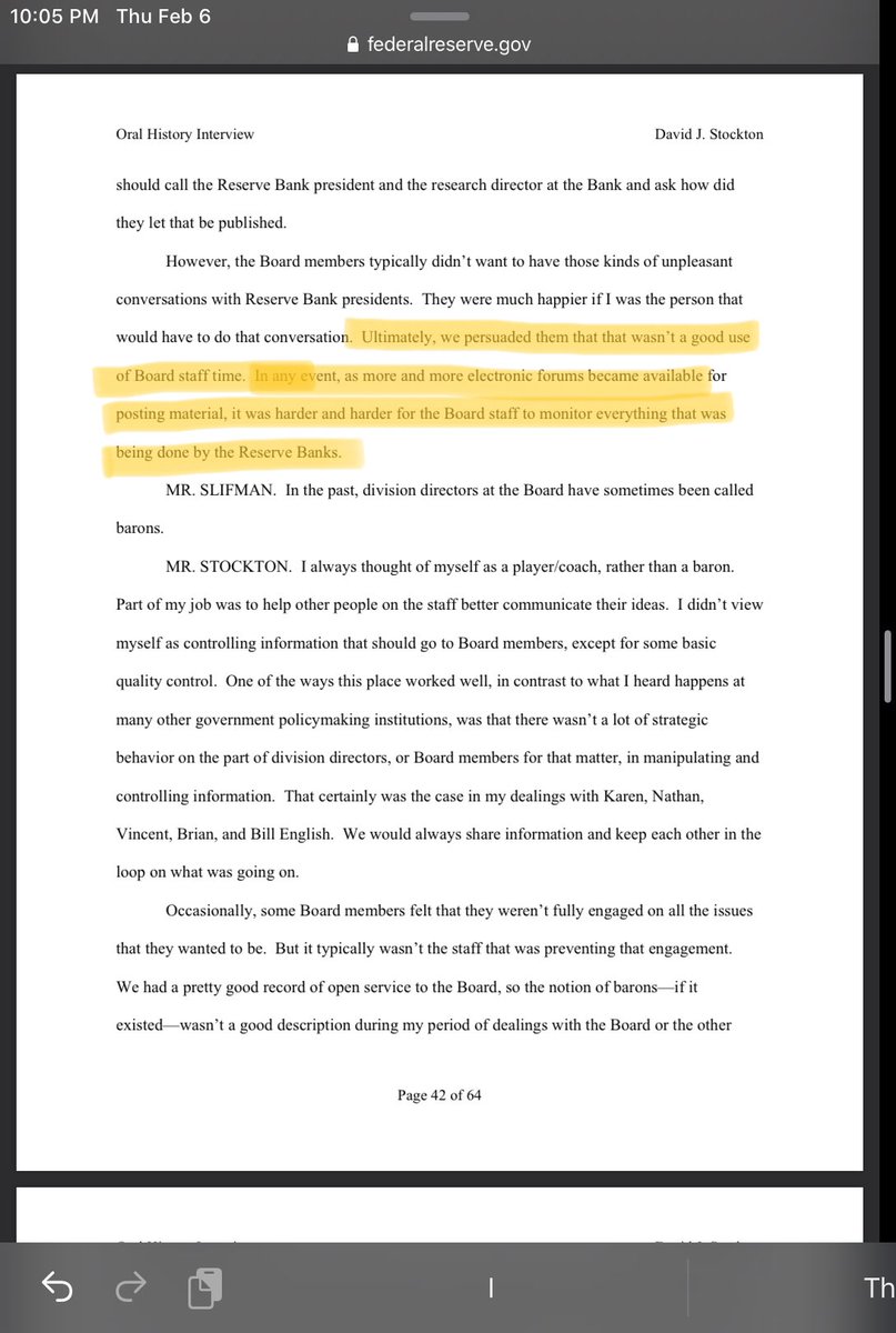 Fascinating - “After Volcker left as Chairman, he came back to the Board and spent some time in an office somewhere and tried to figure out how to fix the research division.”