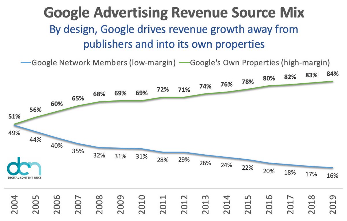 Reminder: GOOGle has been steadily shifting its revenue mix towards its own properties for years. Traffic and content is cheapest on its own properties and it can mine our data from everywhere else (across our browsing history, devices and lives) to optimize those ads shifting w=