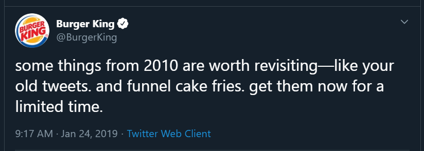 - Burger King like tweet yang di-post pada 10 tahun lepas