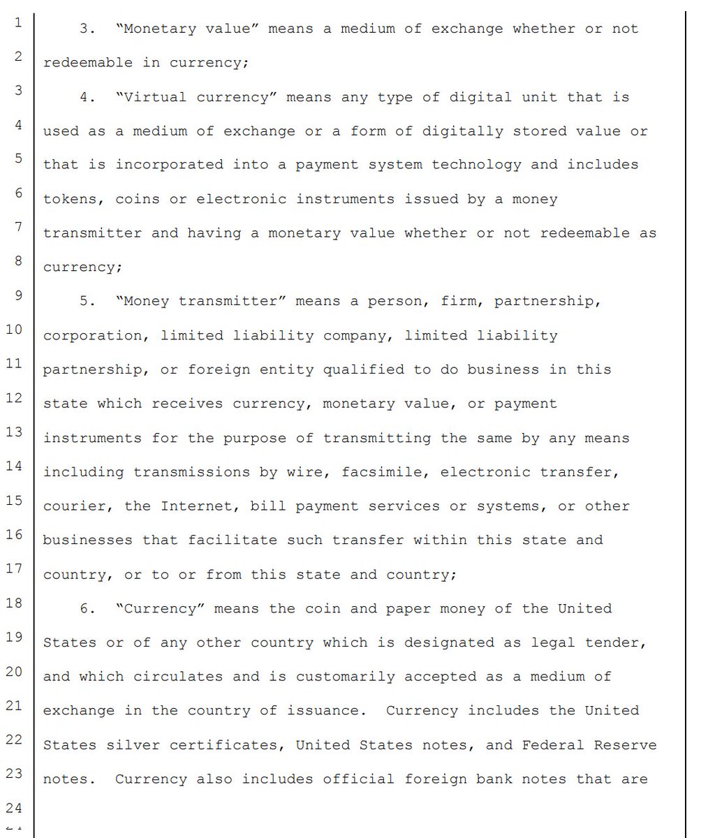 New law: To determine if a particular #cryptocurrency presented as payment is negotiable & redeemable in currency, the K between the govt agency, and the named and designated marketplace shall set forht the valuation method, &