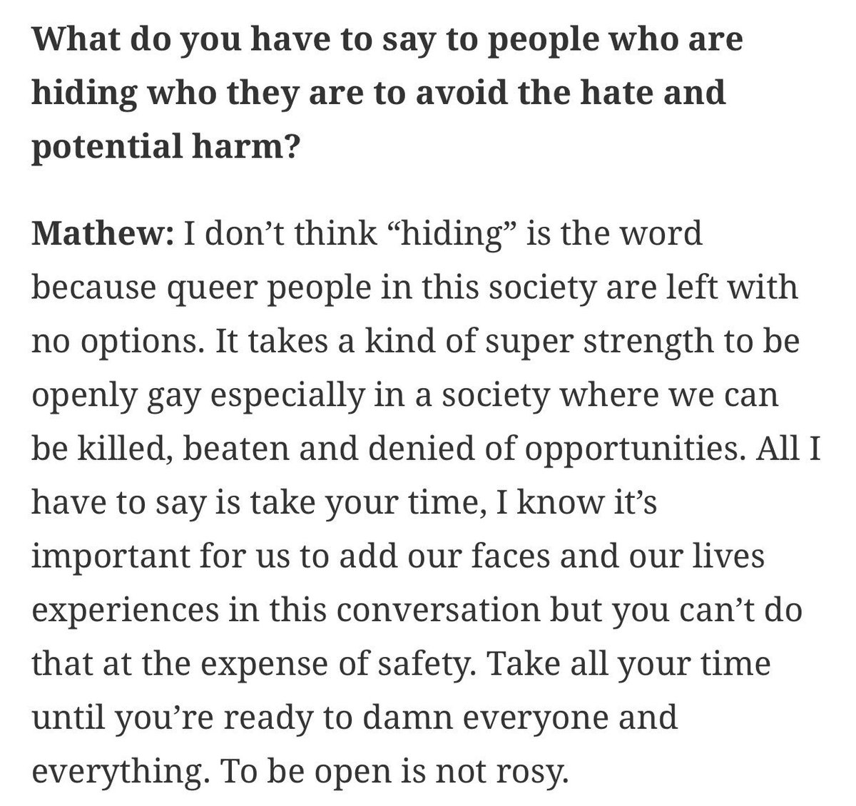 “I decided to be openly gay 2 years ago...to let people know that we are not just names or mere statistics, we are more than those, we are fully blooded people. We are in their churches, schools, workplaces and every other aspect of life,” @Blaise_21 #Nigeria #LGBTQ