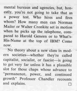 4. (Revised) 4. Here's Burnham in 1978 (reviewing Alfred Chandler's great Visible Hand) arguing that the managerial elite are the people who actually run the large corporations, not novelists and media people!