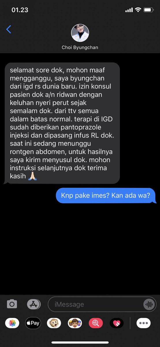 “Sore dok, mohon maaf mengganggu, saya dr. Hanse dari RS Dunia Baru, izin mengirimkan video teman saya dr. Byungchan sedang marah2 dok. Semoga membantu 🙏🏻”