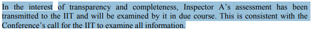 After bashing "Inpector A" as sly, conniving, his study as unauthorized, inaccurate, lacking evidence, "a personal opionion"-they then say they will now take a look at it.