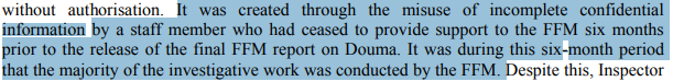 OPCW: "Inspector A" didn't have permission to carry out cylinder study (which found cylinders were likely placed at scene). Had "incomplete evidence".