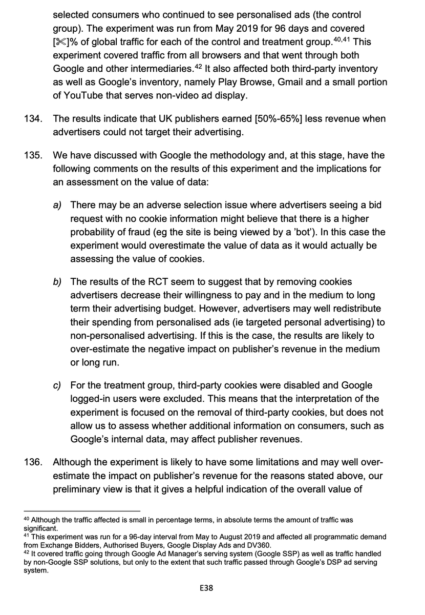 Google also posted blog stating 52% of $ will go away without 3rd party cookies. CMA does nice job analyzing in 133-135 and has begun to probe Google's data. Important as Google buried the flimsy "research" and won't discuss publicly. Google is clearly an interested party. /17