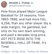 Does Trump have encyclopedic knowledge of Pete Rose's career? No, he's copying "Fox Facts" from the chyrons.